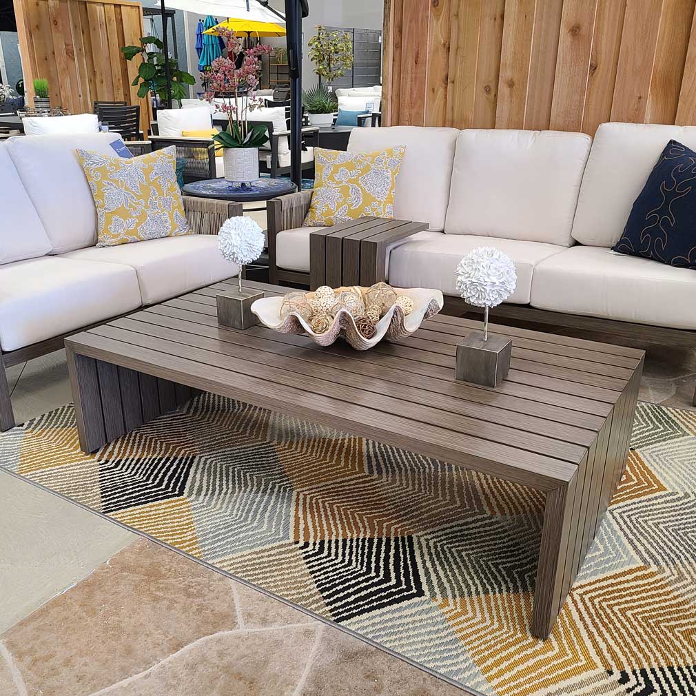 LOW MAINTENANCE | Rinsing with water is all aluminum furniture needs. Avoid using pressure washers.