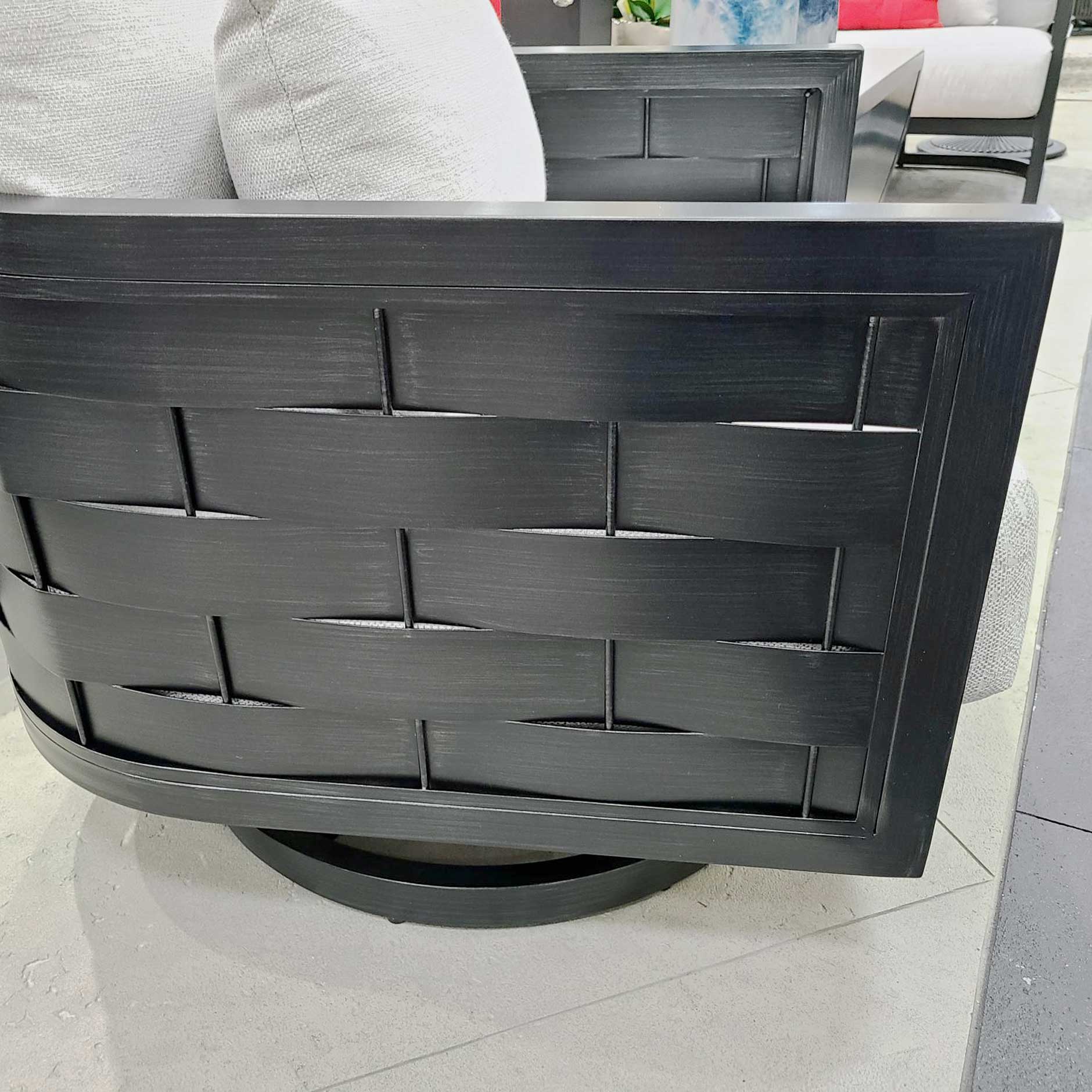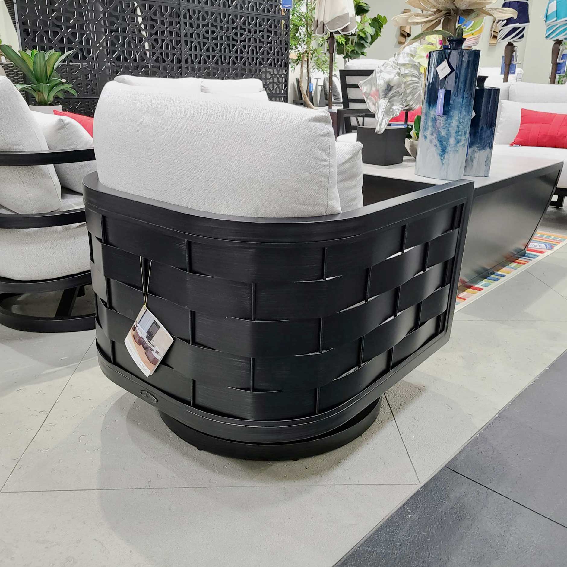 The Biscayne Cushioned Swivel Lounge Chair captures the allure of coastal living. Handcrafted from cast and extruded aluminum to replicate the texture of woven fibers, this chair combines durability and sophistication, featuring a plush cushion for added comfort and 360-degree movement for ultimate relaxation. Configure with any Castelle finish or fabric to create a personalized look that complements your style.