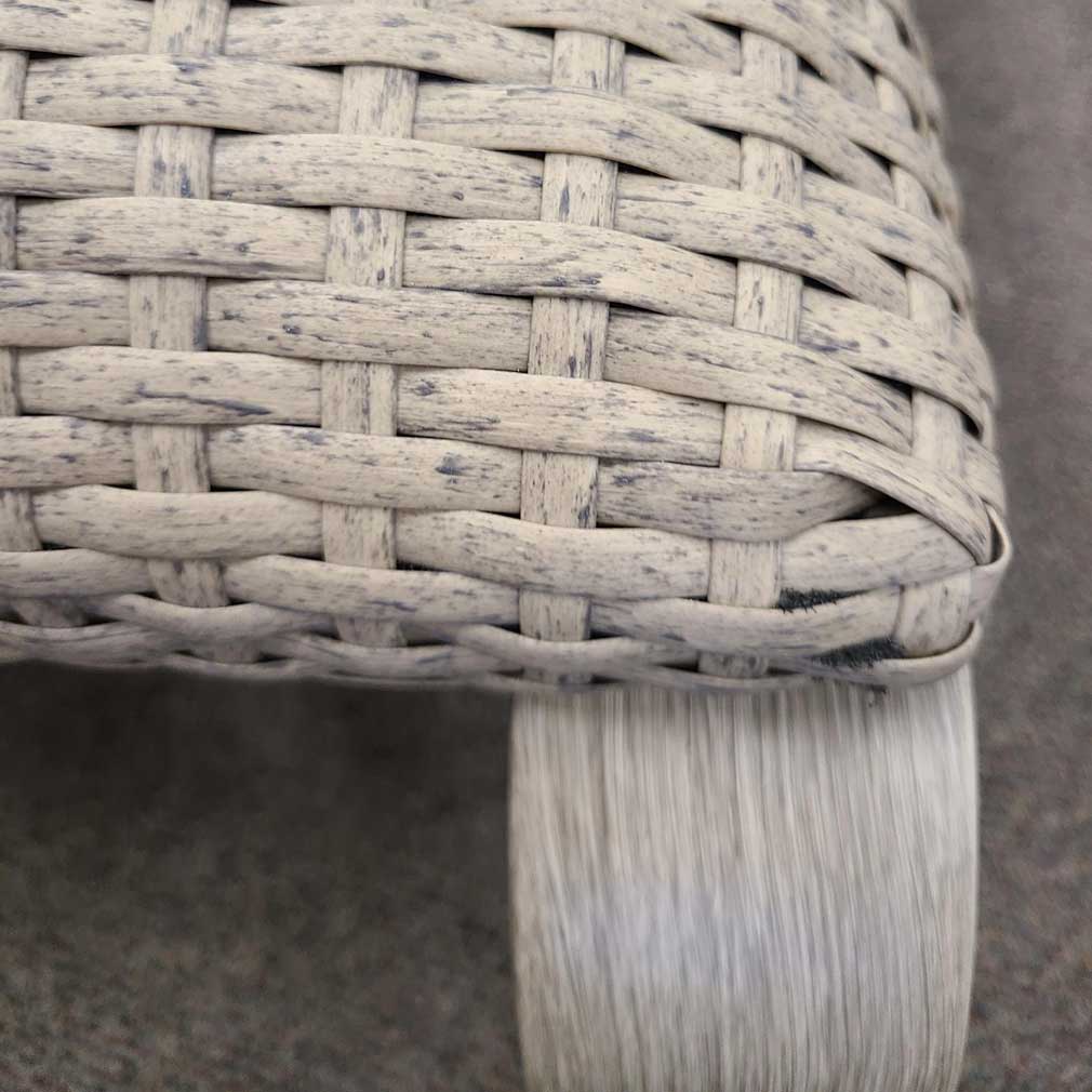 LOW MAINTENANCE | Rinsing with water is all woven furniture needs. Avoid using pressure washers.
