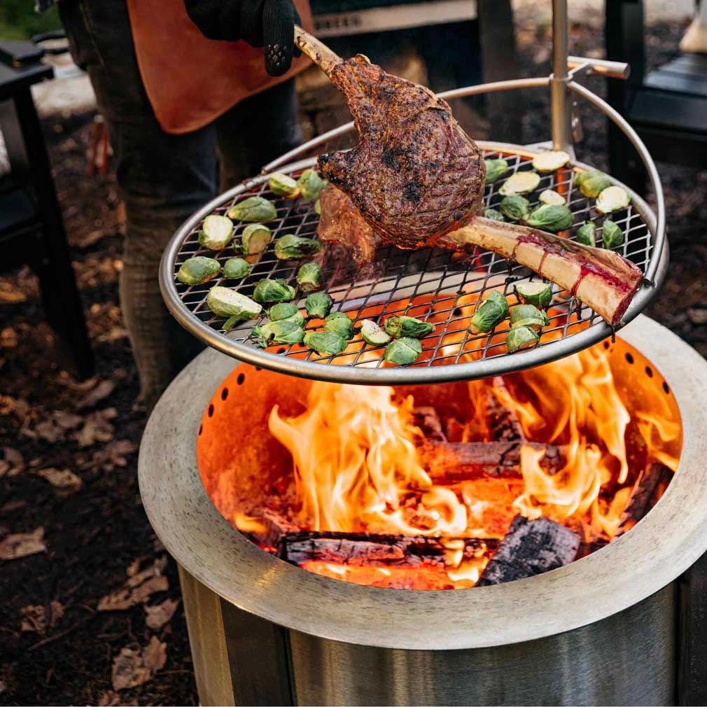 - Double wall construction and secondary combustion holes allow for a smokeless burn