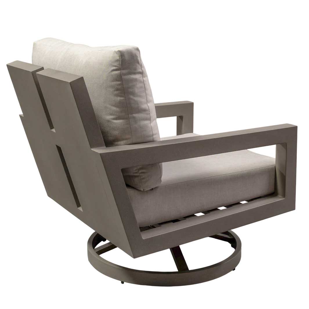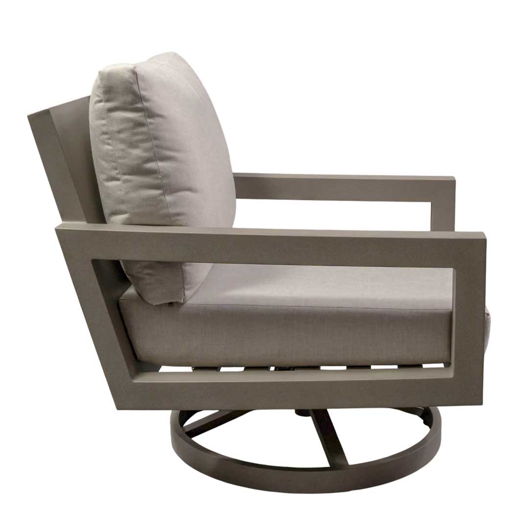 Elevate your outdoor entertaining with the Larkspur Swivel Lounge Chair, where contemporary design meets enduring quality. Built with corrosion-resistant aluminum and topped with weather-resistant sintered stone, this piece seamlessly blends sophistication with practicality. Its graceful proportions and refined finish create an inviting focal point for any patio or garden setting. Pair it with complementary Larkspur collection items to establish a harmonious outdoor sanctuary that exudes understated elegance and timeless appeal.
