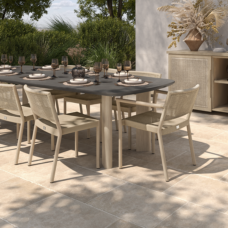 Introducing Orleans with its curved backrest and open weave design creates a cozy, enveloping feel. Combining style with comfort, Orleans adds warmth and elegance to any outdoor space. The versatile Barley & Flax combination allows for endless complementary fabric choices, perfect for creating a serene and inviting ambiance.