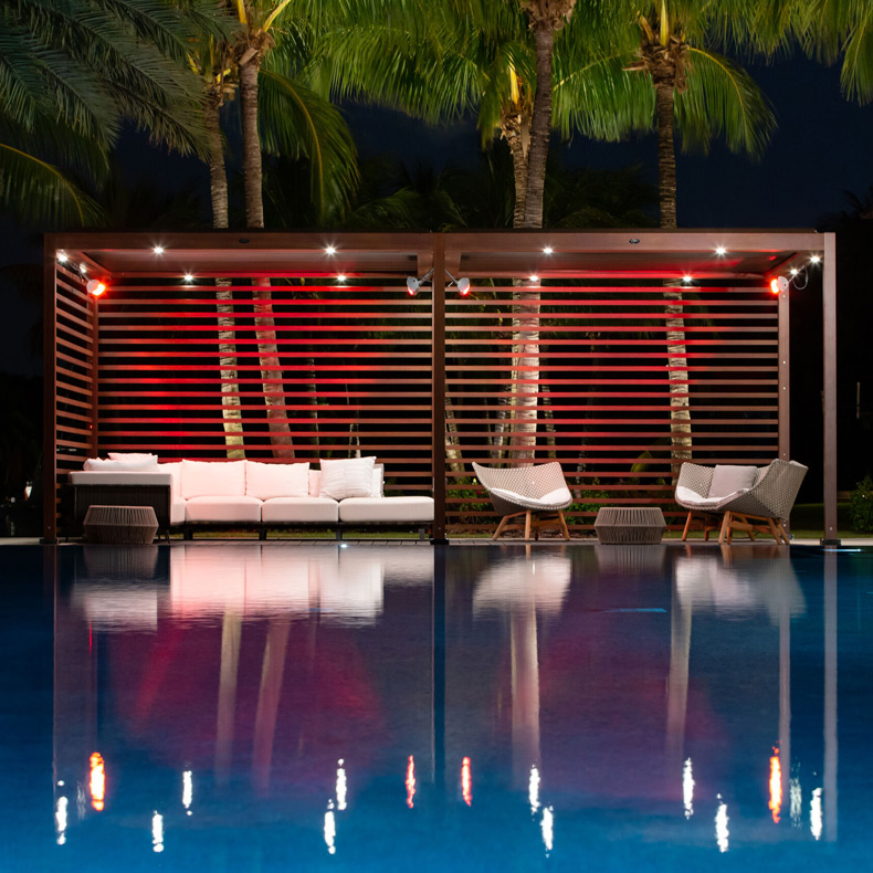 Tuuci® Solanox Cabana structures effortlessly transform any patio, poolside or outdoor landscape into open-air living rooms. The structure’s sleek modular design is built to custom specifications; shape, size, finish, walls, seating and lighting options. The outdoors never felt more luxurious.