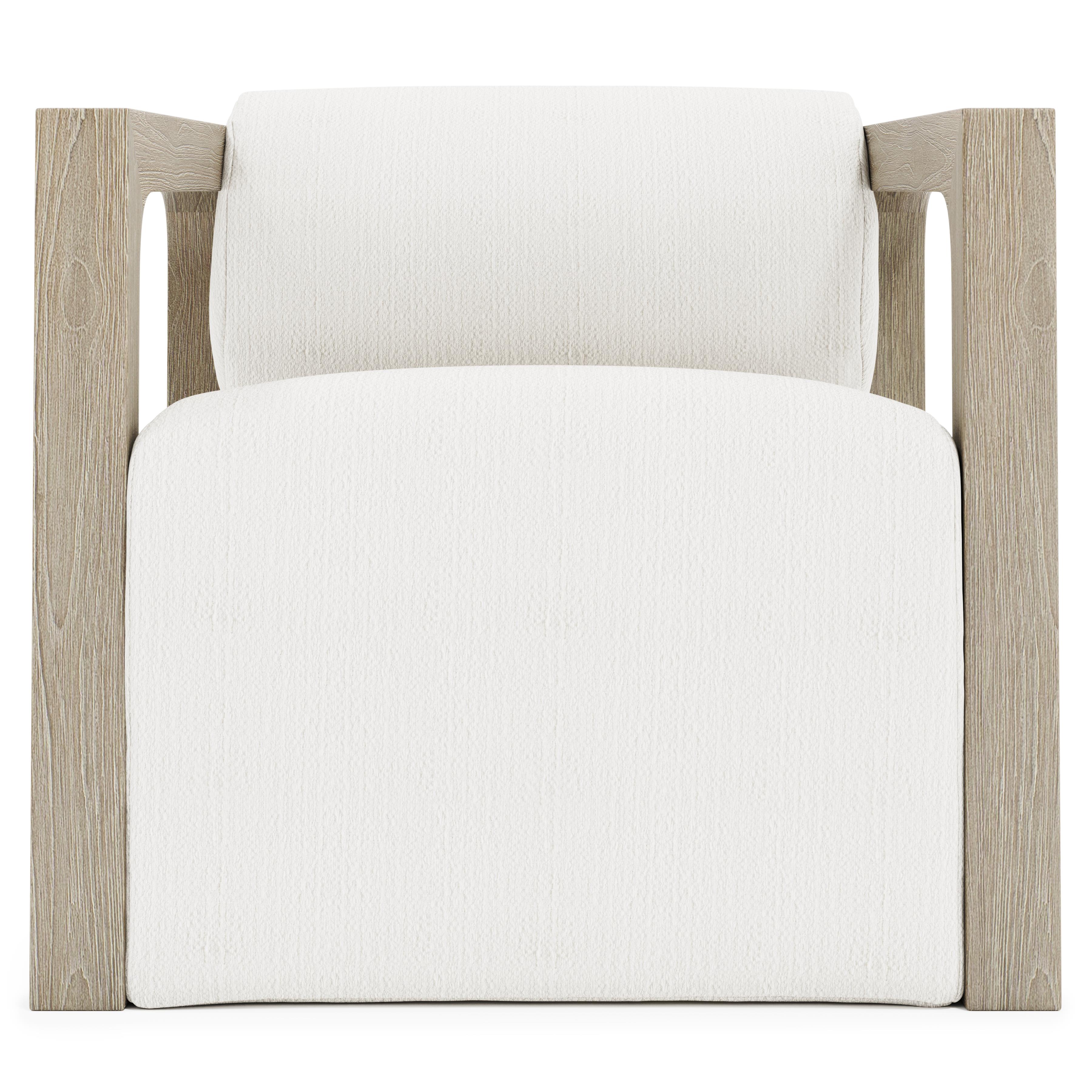Two exposed teak asymmetrical squares encase the seat and floating back of the Leilani outdoor swivel chair. Offered in Sea Oat finish, the arms provide a gentle slope to the front with softened corners inside the open shape. A rounded back and deeply sloped seat ensure that comfort is key in this 360-degree swivel chair.