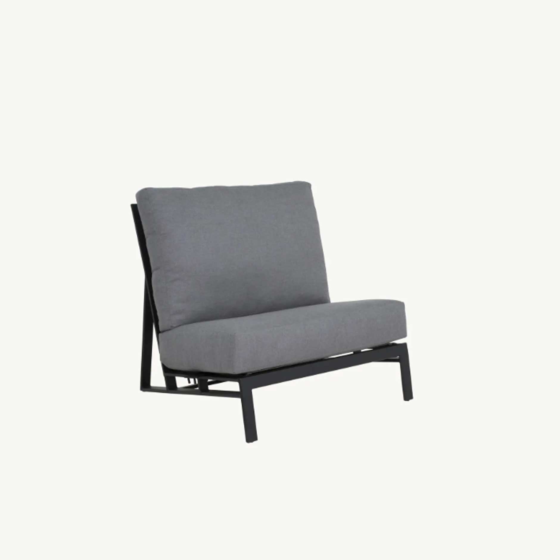 Simple linear arms, legs and back supports complete the Prism Sectional Armless Lounge Unit designer look. With handcrafted extruded aluminum, a framed upholstered construction and oversized tailored seat and back cushions, the Prism Collection delivers the ultimate in leisure.