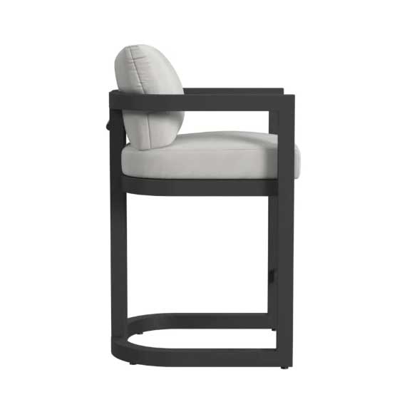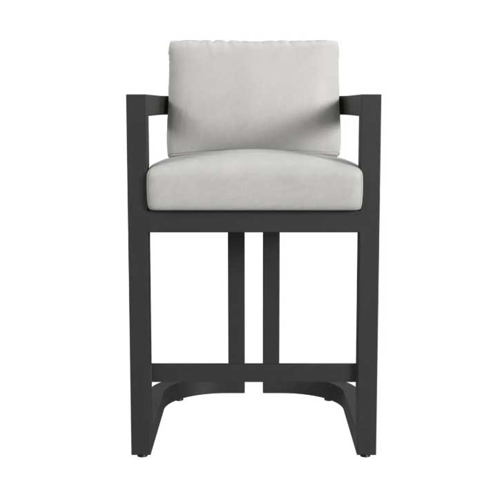 Deco meets contemporary with Sunset West’s Malibu Collection. Featuring a structural design with modern proportions, the Malibu Barstool includes a split-back frame and curved tuxedo arm. Tailored cushions mimic the sleek frame design and provide supreme comfort.