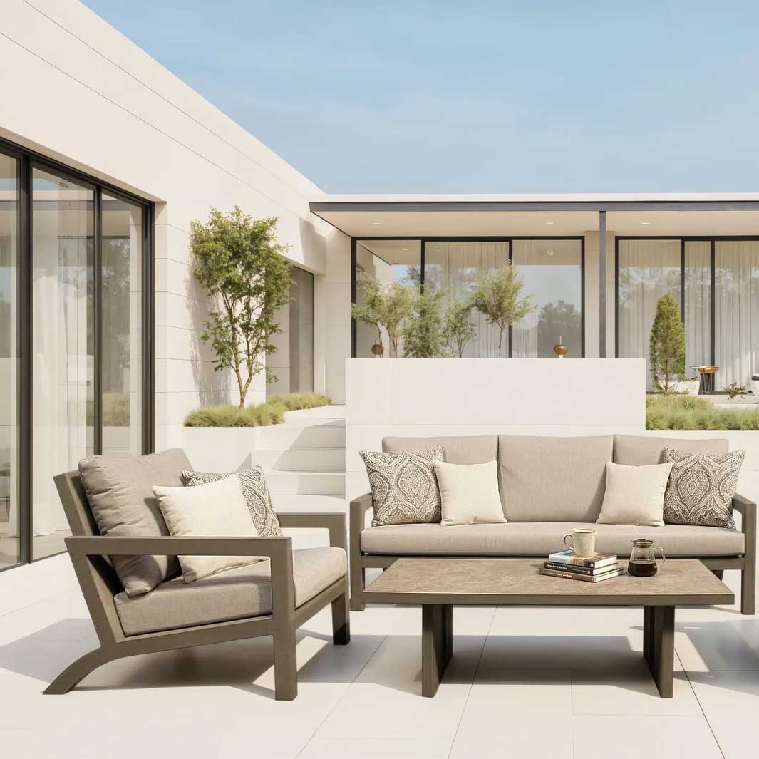 Introducing the Larkspur Sofa, an elegant addition to contemporary outdoor living spaces. This three-seat deep seating piece combines refined design with exceptional durability, engineered to withstand the elements while maintaining its sophisticated aesthetic. Seamlessly integrated within the Larkspur Collection, it creates a cohesive look across your patio, deck, or poolside retreat. Built with premium materials and thoughtfully constructed for comfort, this sofa invites relaxation and entertaining in style.